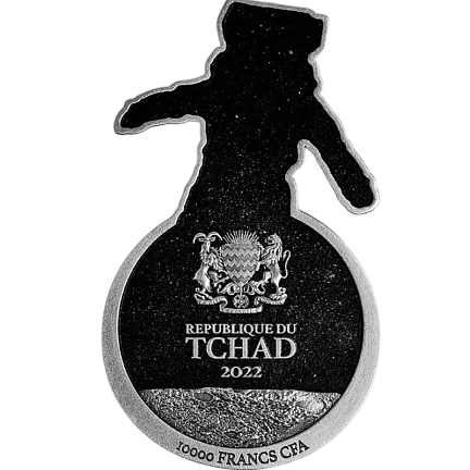 На аверсе монеты того же цвета, обозначающего пространство, изображен герб Чада и надписи: «REPUBLIQUE DU TCHAD» — страна чеканки, «2022» — год чеканки и «10000 FRANCS» — год выпуска. Номинальная стоимость.
