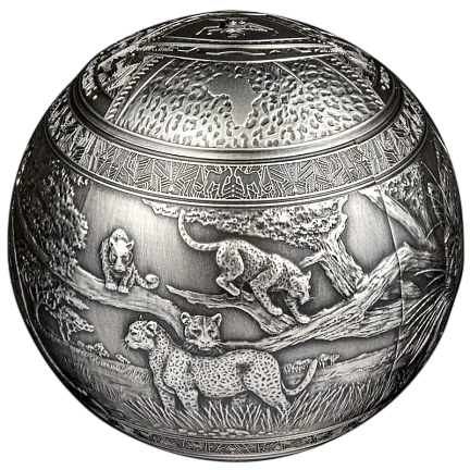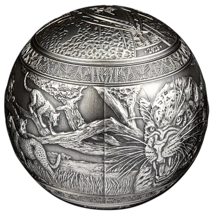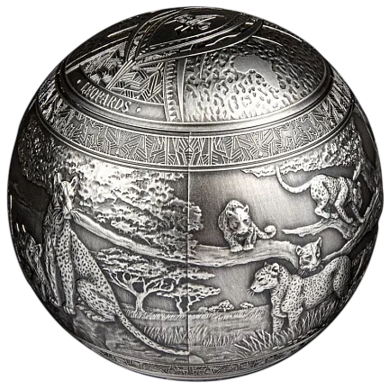 Серия «Большая пятерка» и посвящена быстрому охотнику: африканскому леопарду. У монеты чудесной сферической формы, красивый дизайн, качество античной отделки. Она поставляется в роскошном футляре вместе с сертификатом подлинности. Ограниченный тираж всего 199 экземпляров по всему миру.