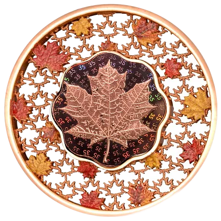 Эта удивительная серебряная монета весом 2 унции посвящена 35-летию первого серебряного кленового листа, выпущенного в Канаде в 1988 году. Монета имеет эффектный дизайн, выполненный с использованием очень изысканной филигранной техники вырезания, имеет пробное качество, покрыта розовым золотом и имеет цветное покрытие. Монета поставляется в футляре, выдержанном в едином стиле, вместе с сертификатом подлинности. Тираж ограничен 1.988 экземплярами по всему миру.