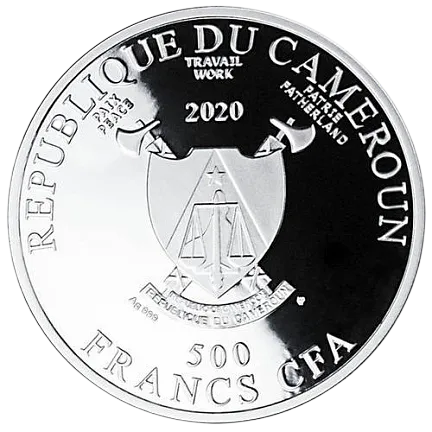 На аверсе - герб Камеруна и надписи: "REPUBLIQUE DU CAMEROUN" - страна-эмитент, "2020" - год выпуска и "500 FRANCS CFA" - номинальная стоимость.